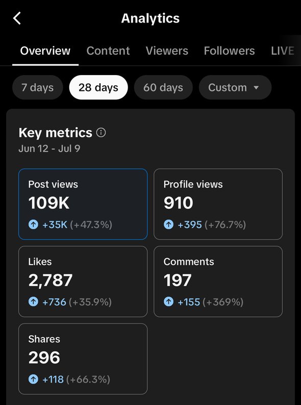 Analytics based on audience reached from June 11 to July 10, 2024. Current follower count: 1, 234